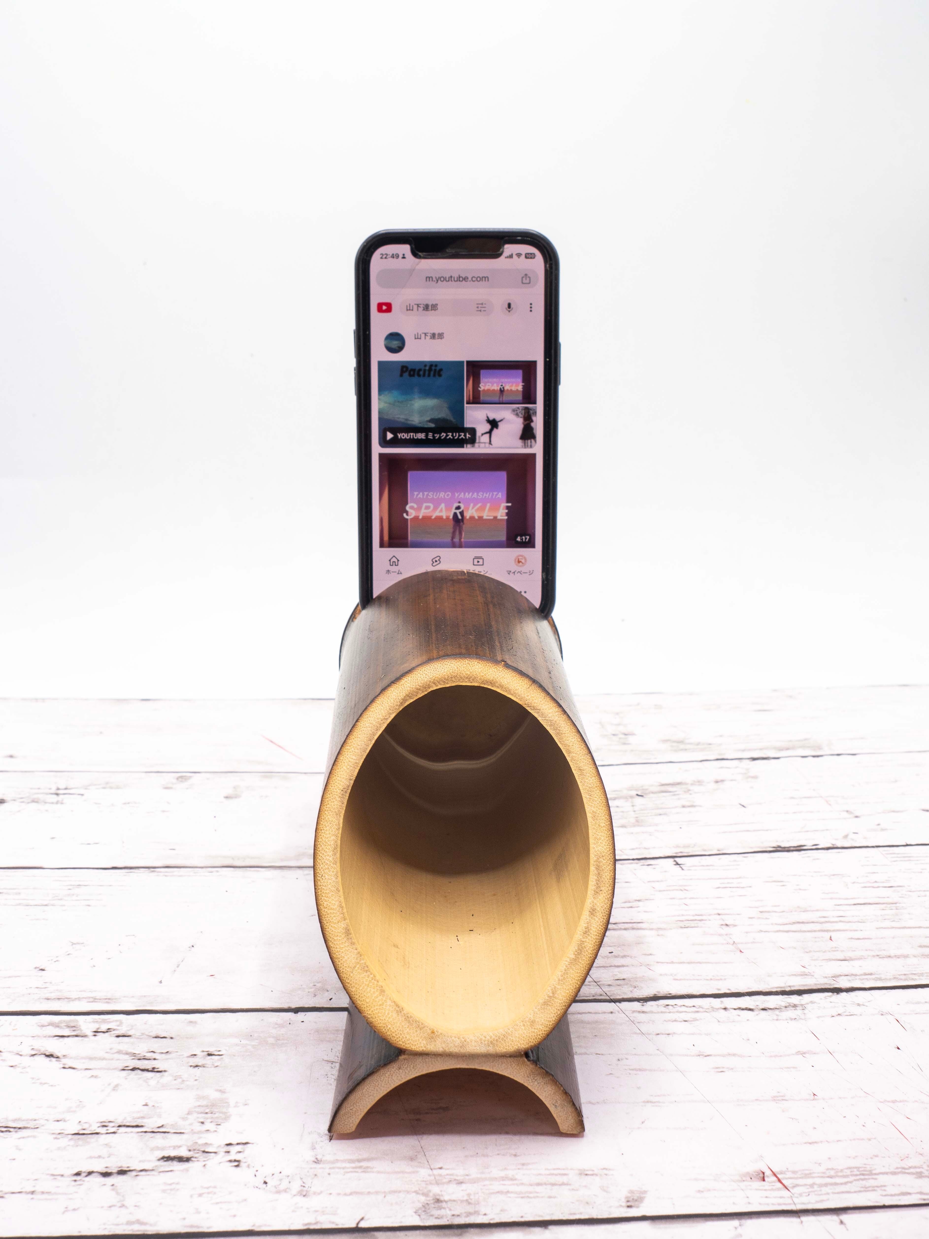 孟宗竹で作ったスマートフォン用のスピーカー。