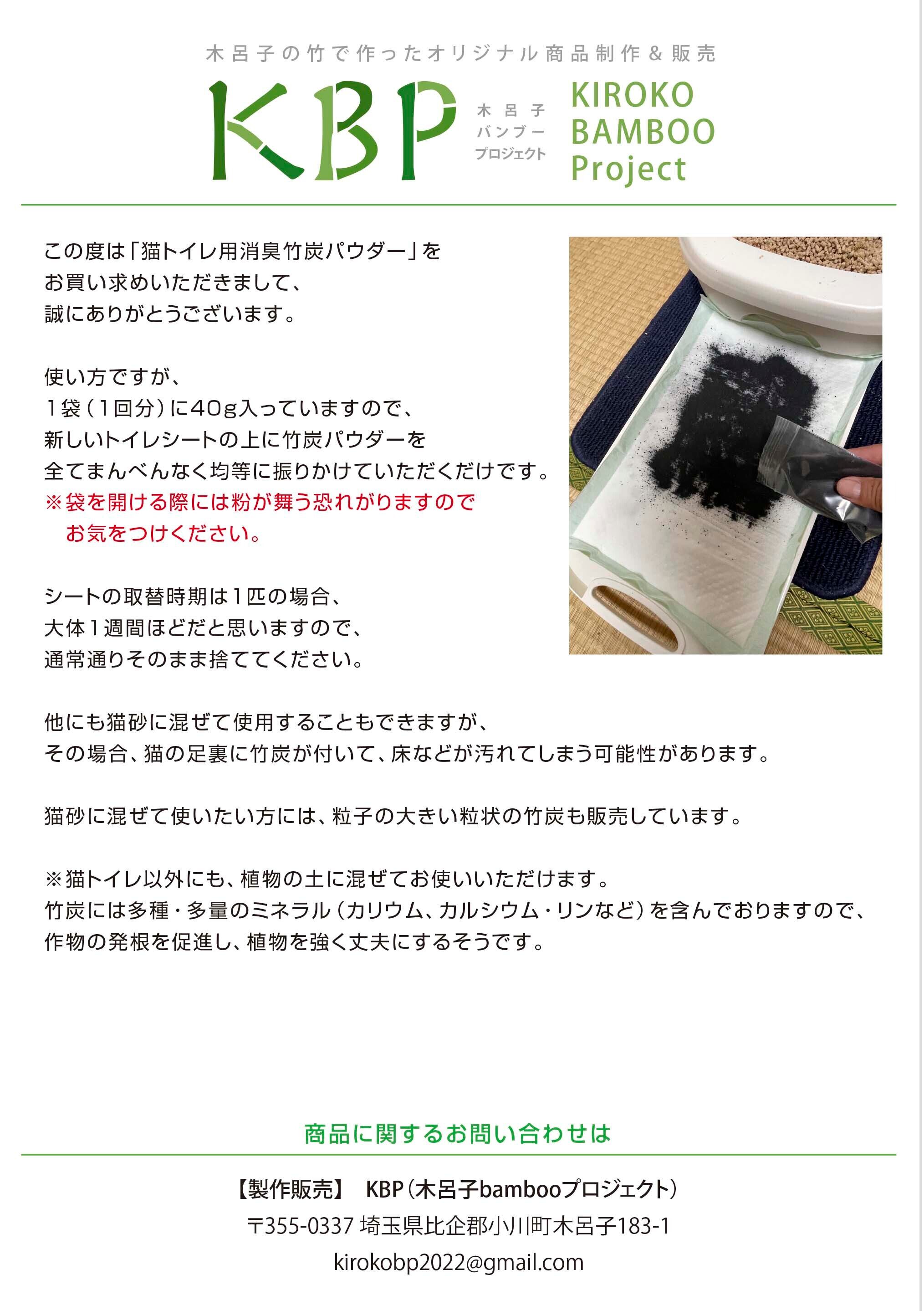 ◎猫のトイレシートの上に竹炭パウダー1袋分を
